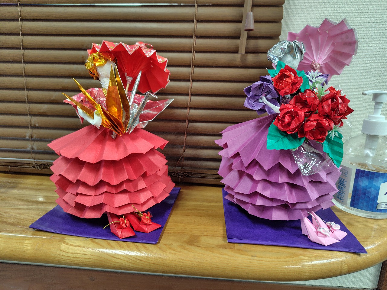 入居者様が折り紙をメインとした材料で人形を作ってくれました!
