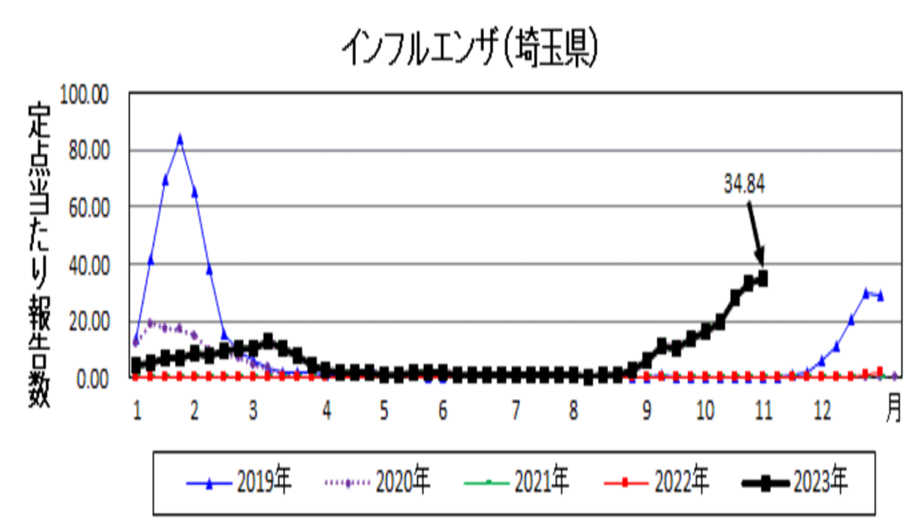 全国的にインフルエンザが流行してきたとのことなので、埼玉の流行状況を確認してみました。