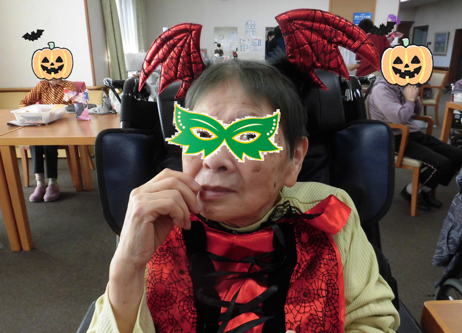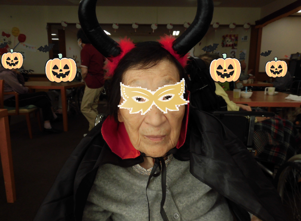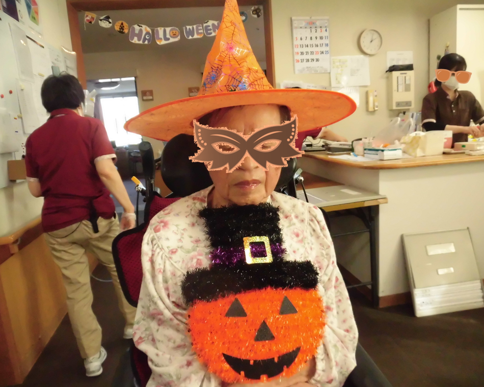 10月末のハロウィンで入居者様に仮装してもらって写真を撮ったのでご紹介します。
