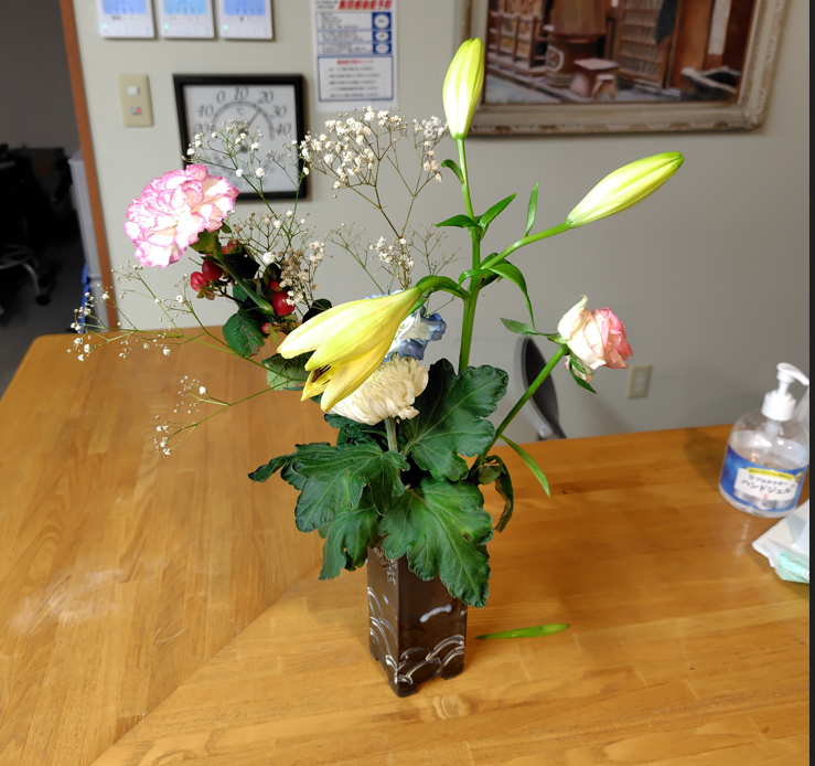 花が飾ってあると何気ない空間も華やかに感じられますね。