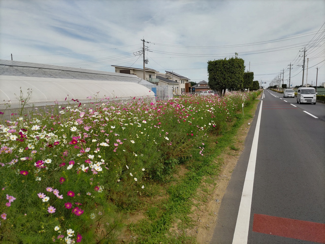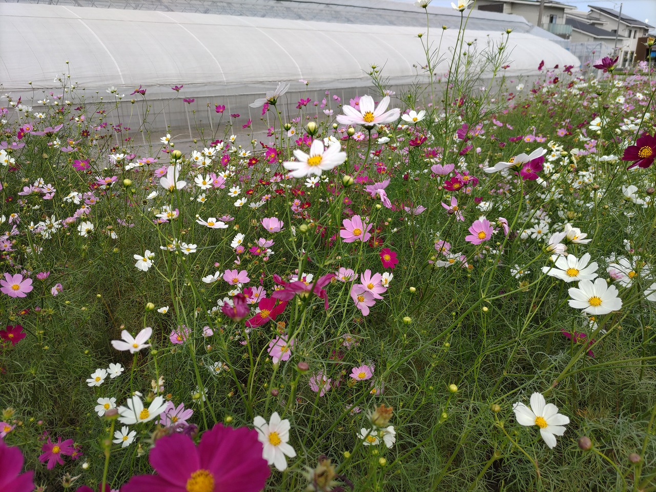 施設から車で5分くらいの場所にある岡部のコスモス街道(岡部駅付近)で10月8日(日曜日)に