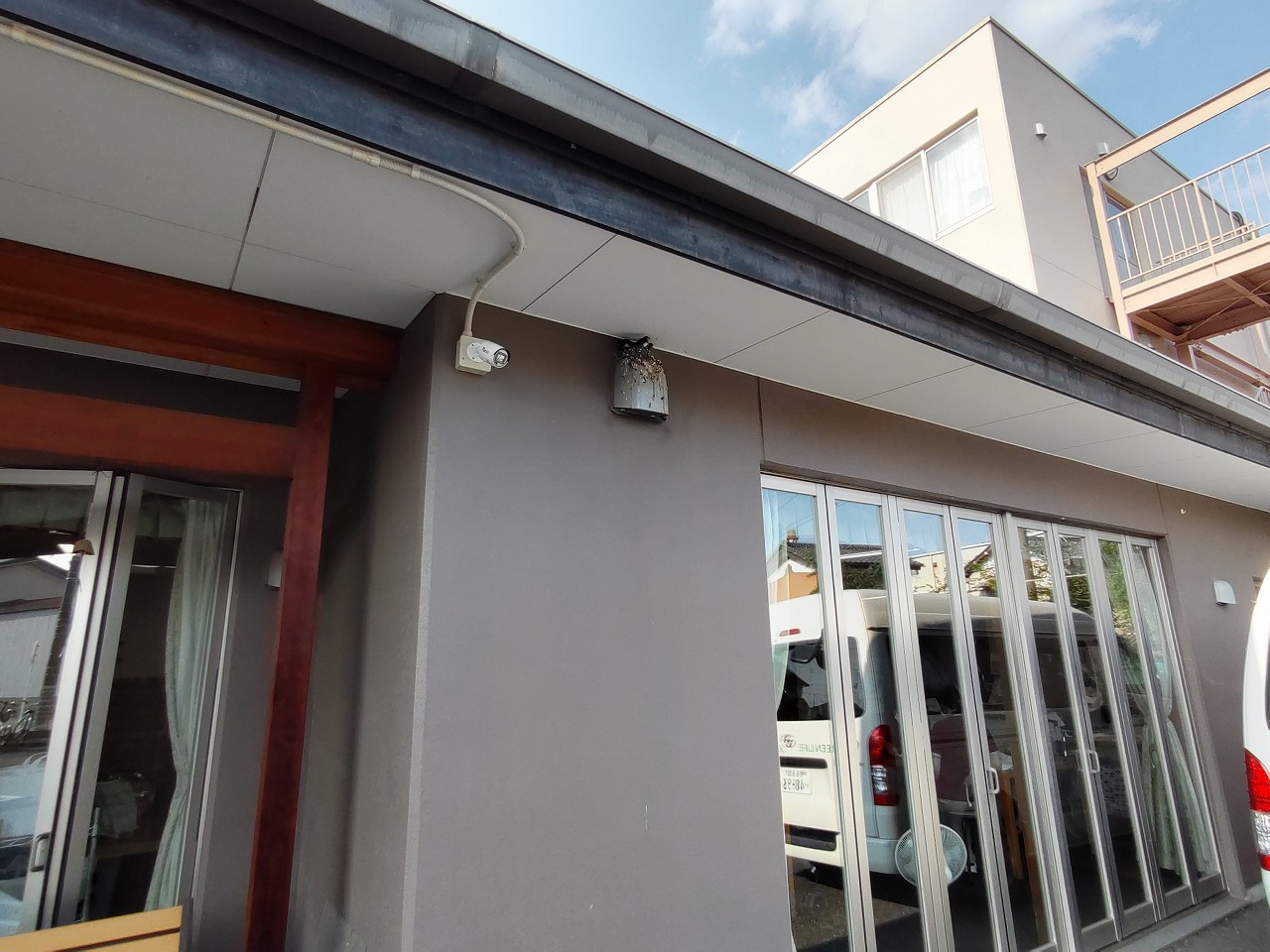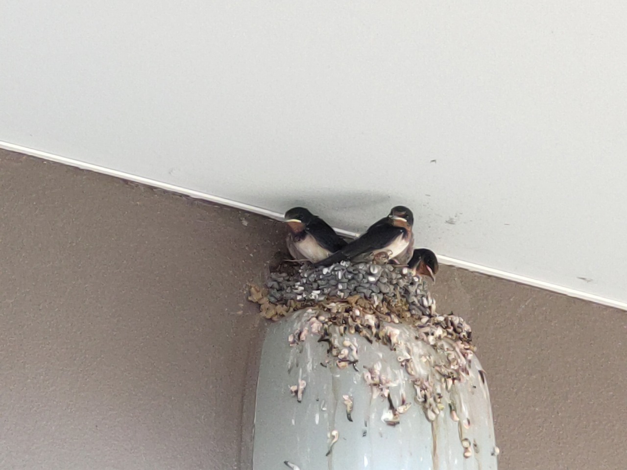 最近気付いたのですが、施設の軒下にツバメの巣ができていました!