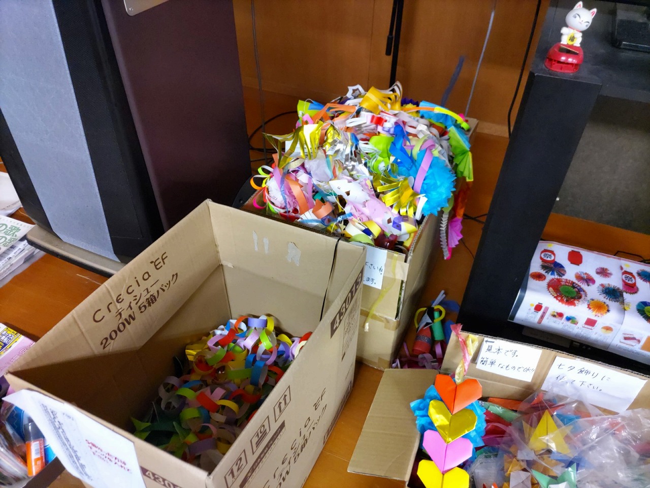 七夕飾りようにみんなで作成した飾りも結構あります。