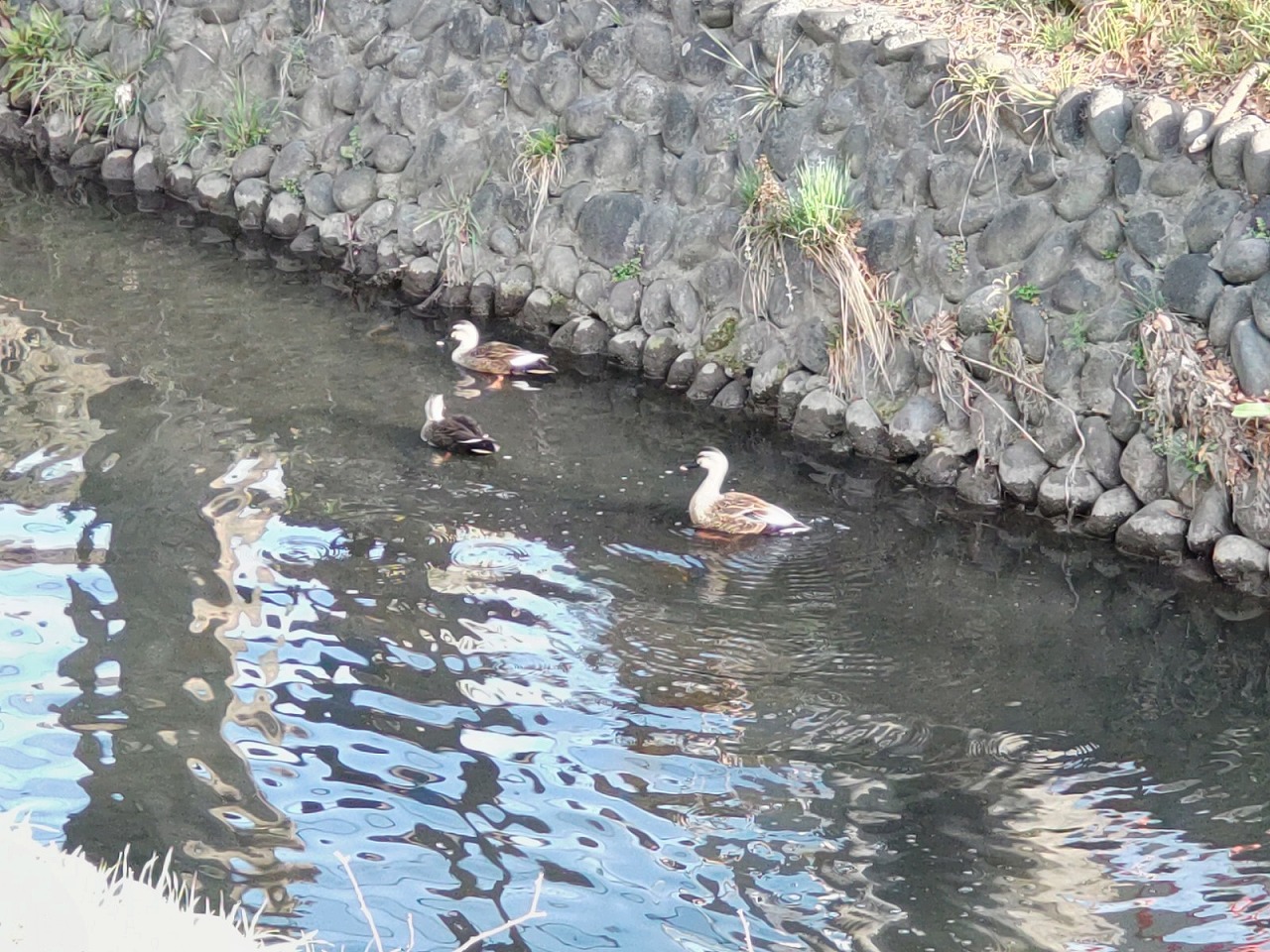 唐沢川の桜を見に行ったら、川にカルガモがいました!