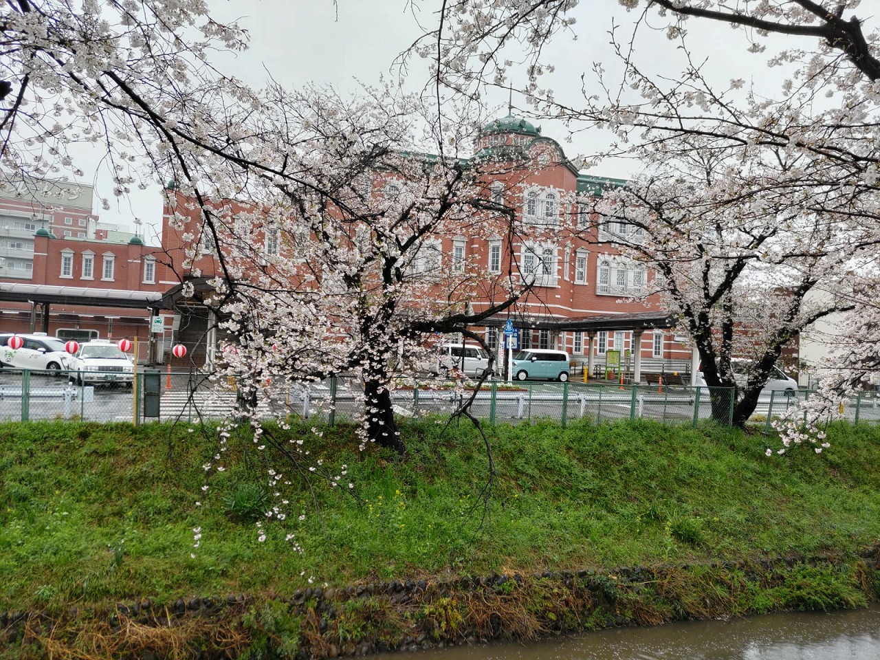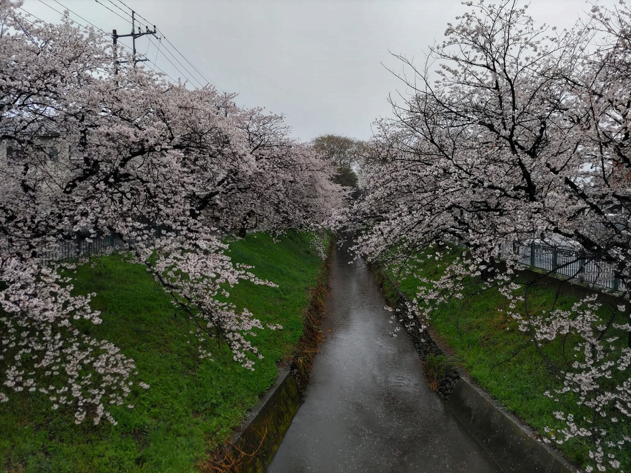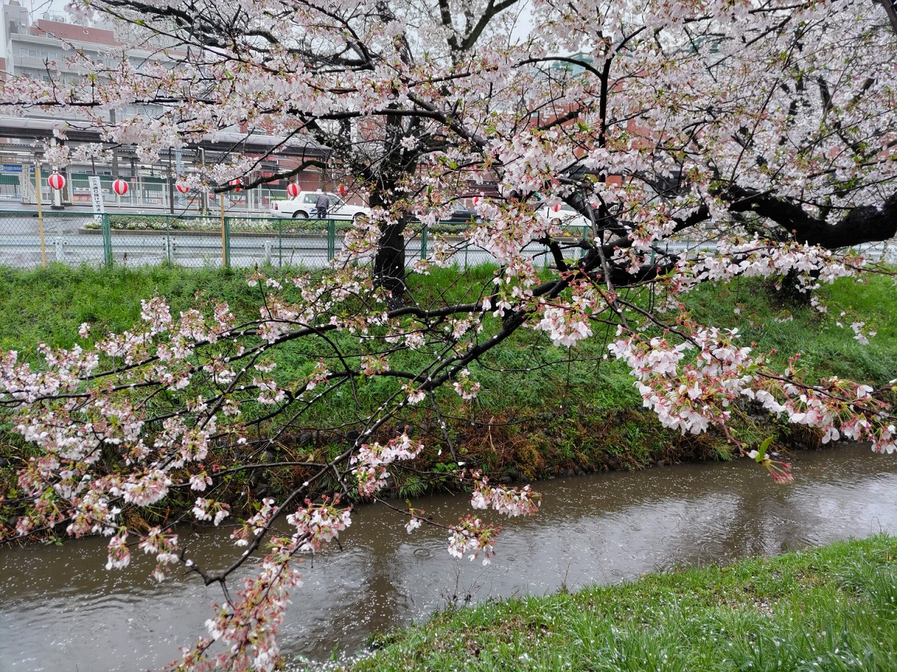 雨が降っていて肌寒いのもあって日曜日なのにほとんど川沿いを桜目当てで散歩される方がいませんでした。