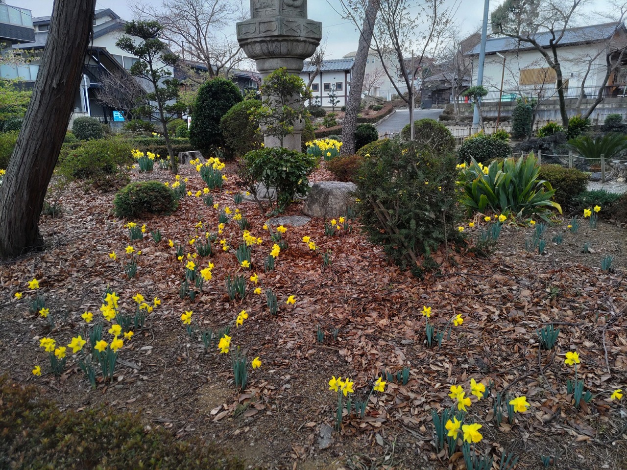 深谷駅南にある瀧宮神社前にスイセンが多く咲いていました。