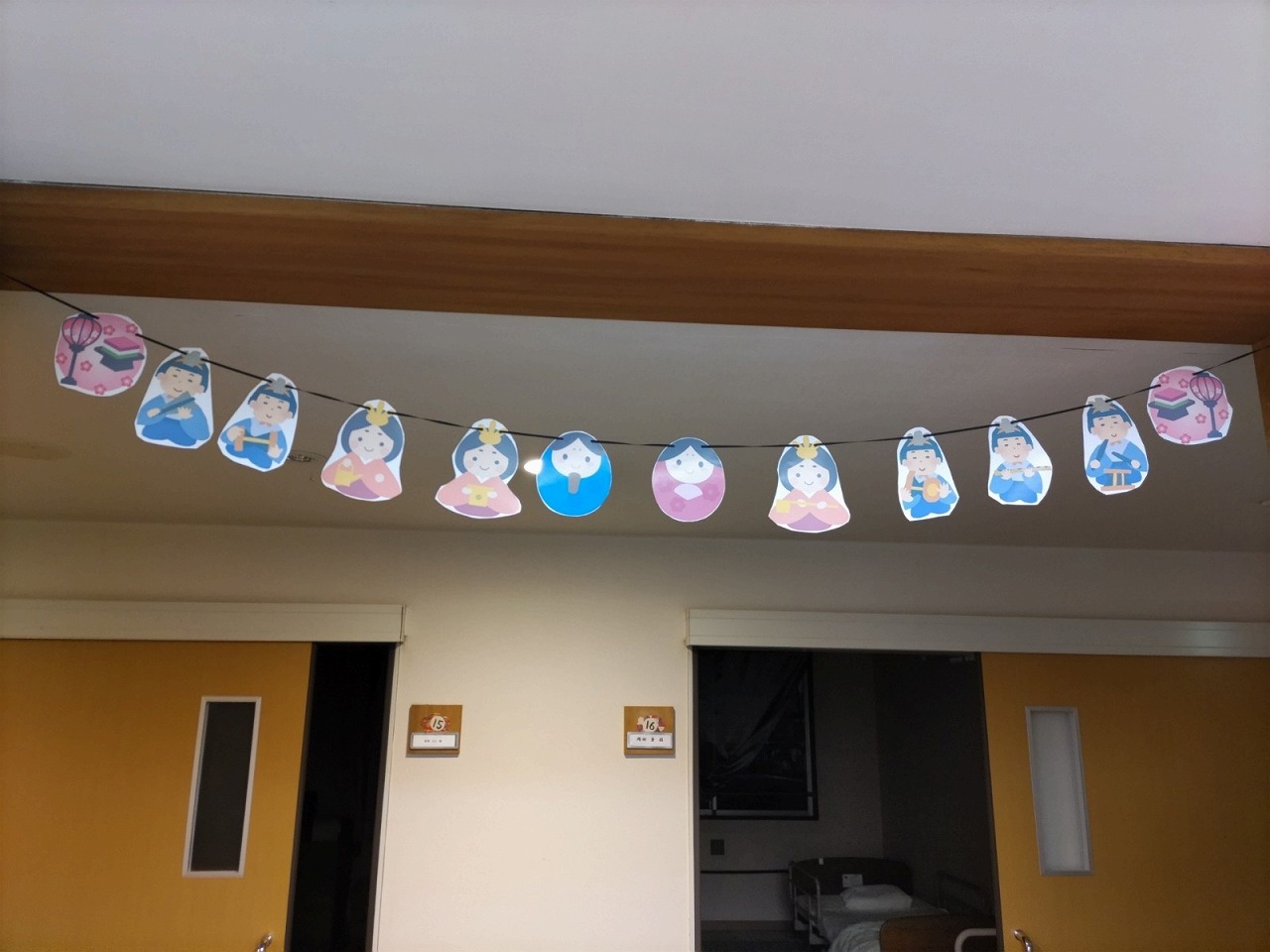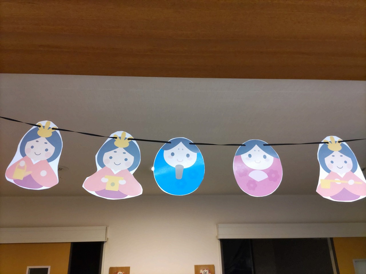 施設内のガーランドをひな祭りバージョンにしてみました(^^)/