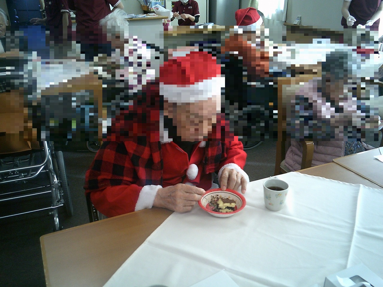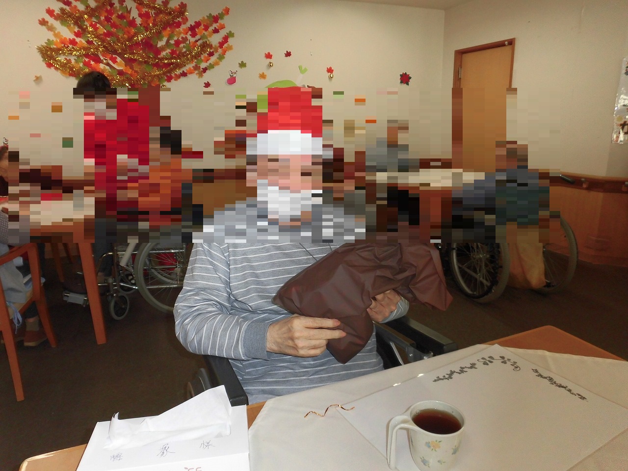 先日行われたクリスマス会ですが、入居者様もノリノリでサンタクロースの衣装を着てくれました。