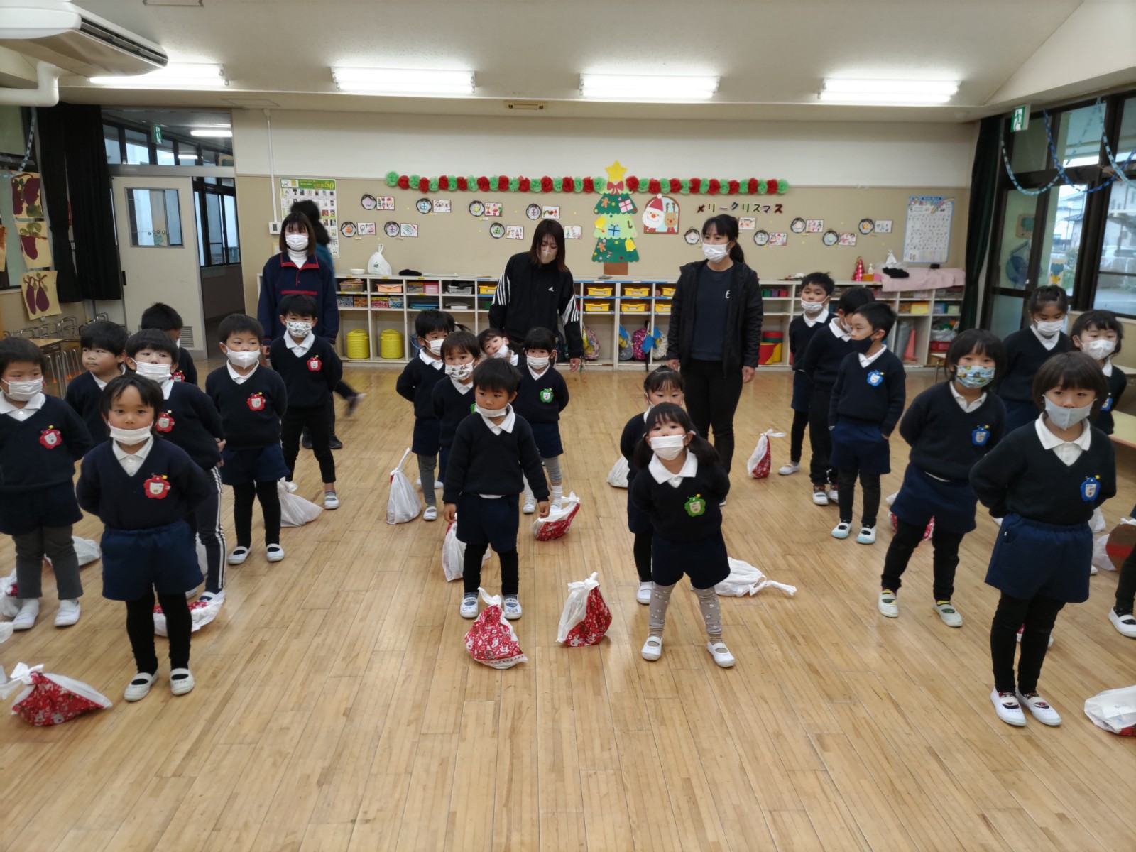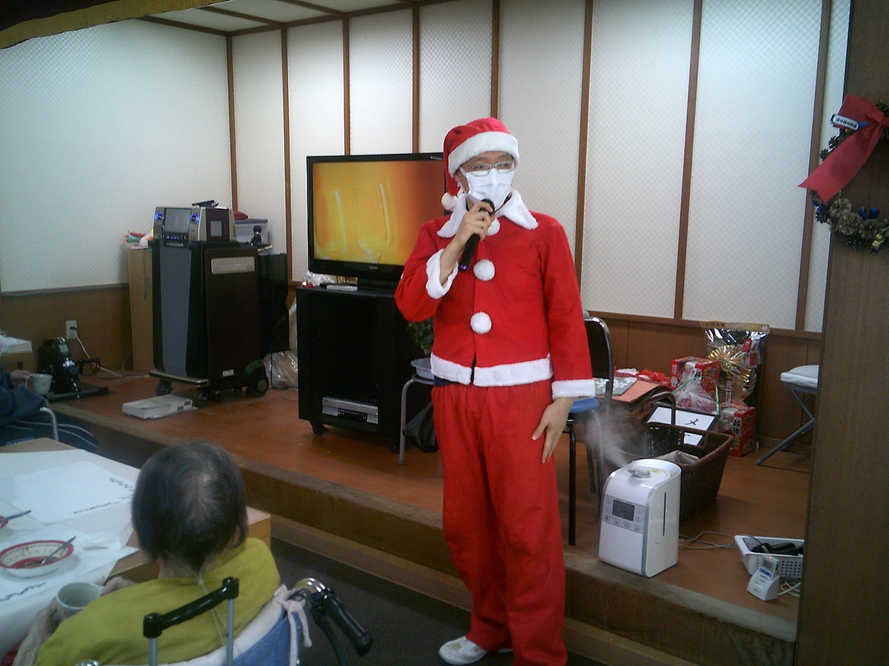 職員がサンタになって場を盛り上げ、クリスマスソングを流し楽しい時間を演出しました。