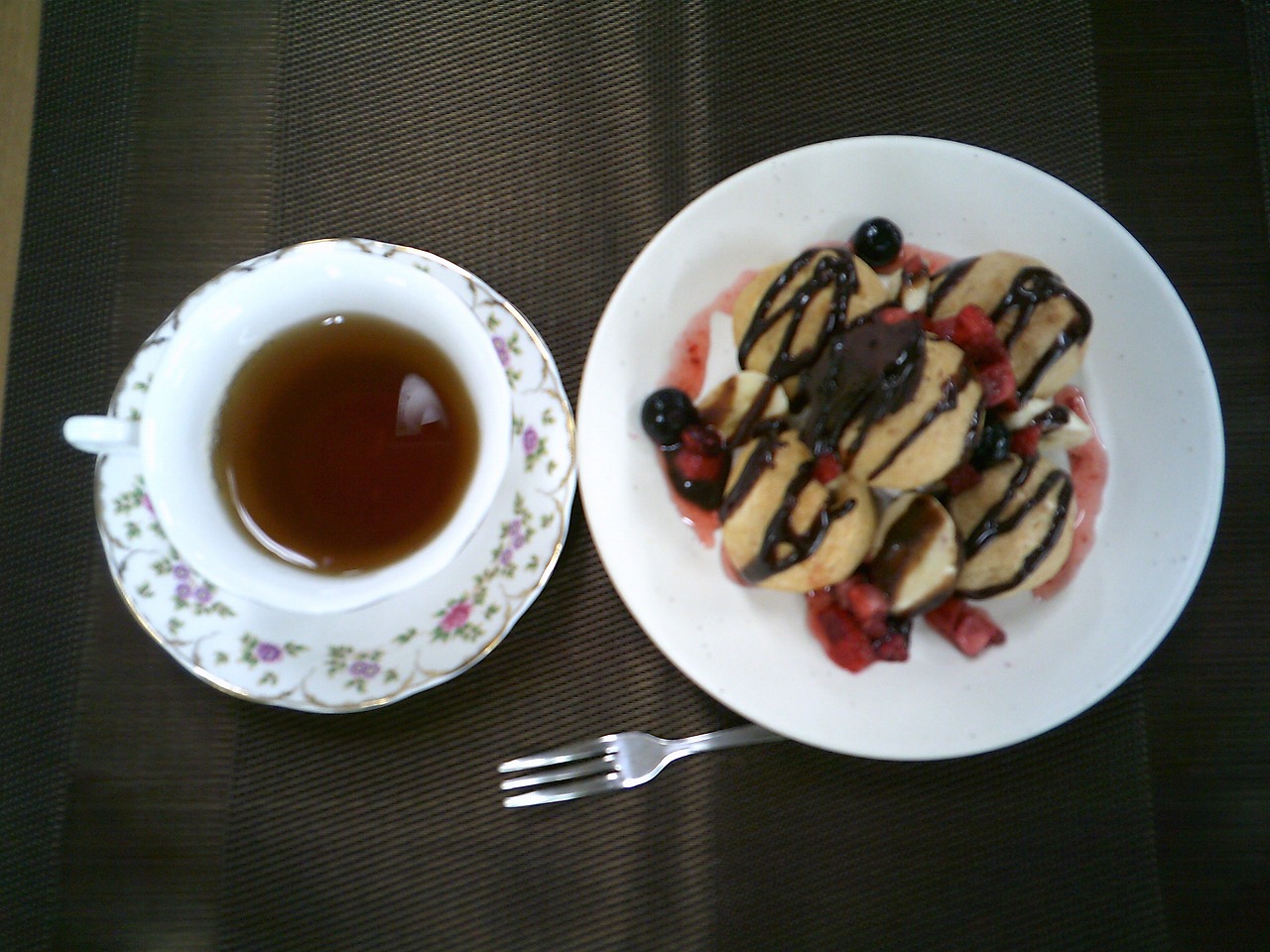 今月は、プチシューのチョコ掛けフルーツ添えです。
