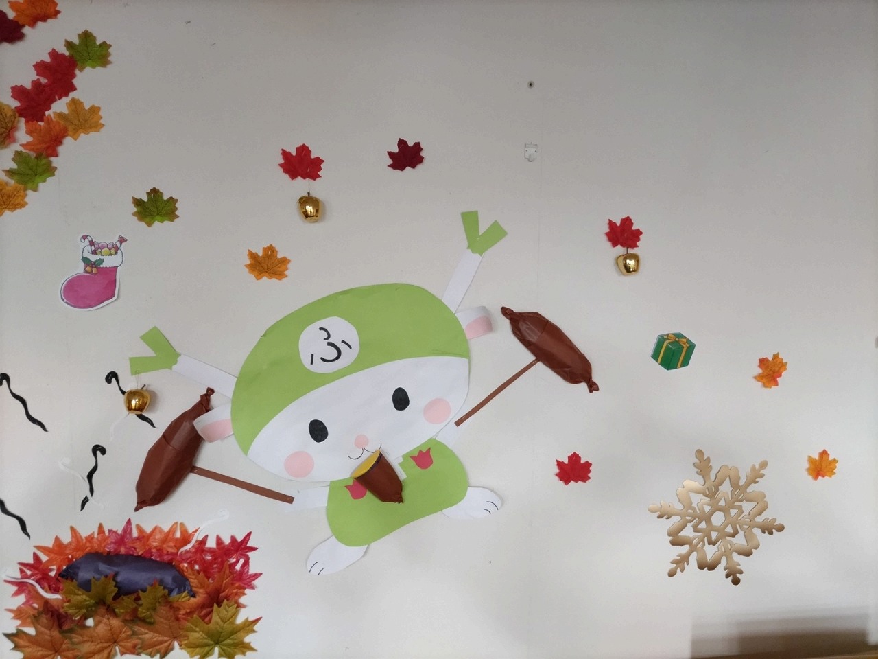 前回、キティちゃんエリアでしたが掲示板下にもキティちゃんが陣取っているので、その周辺も12月っぽくしてみました(^^)/