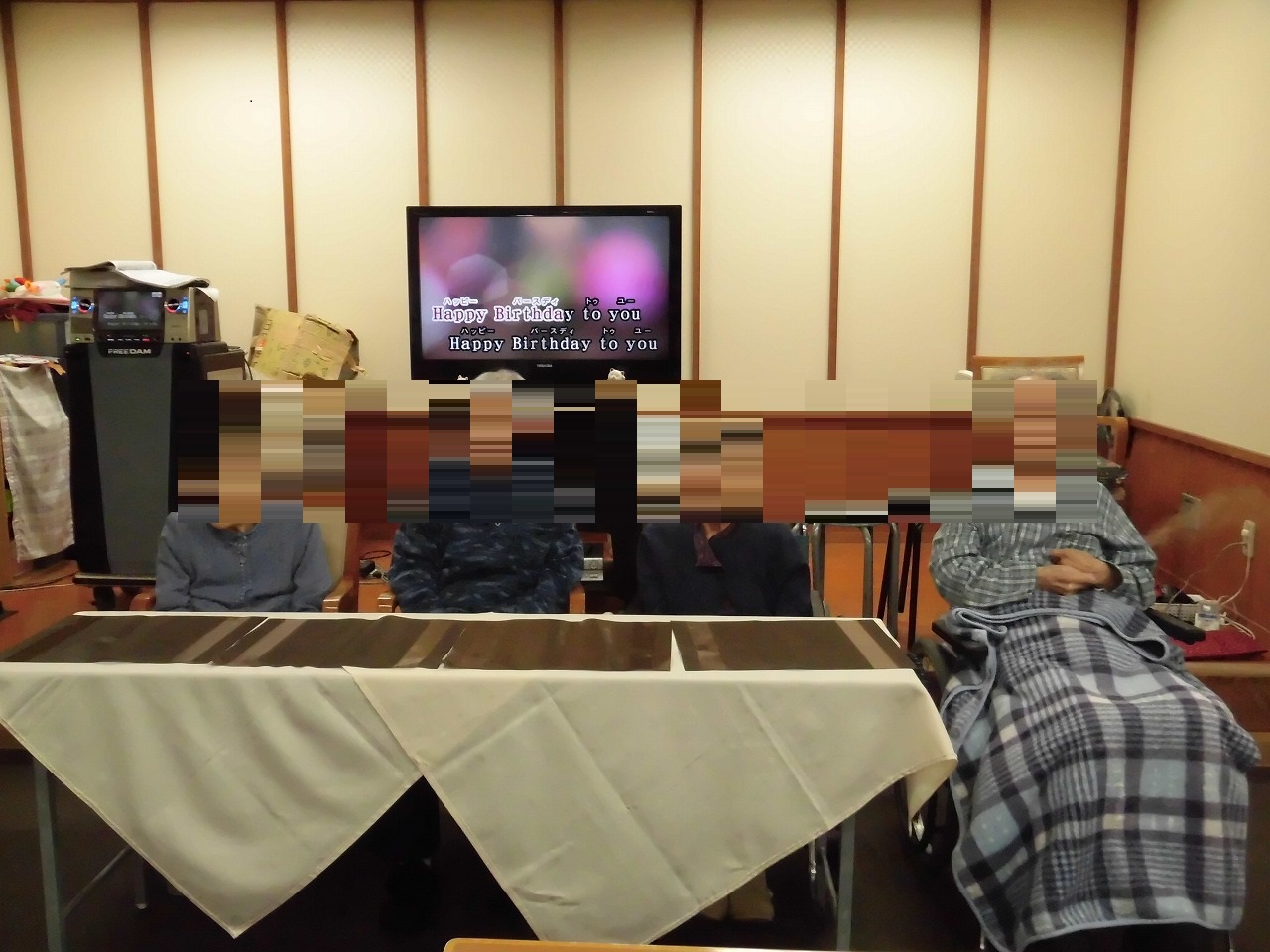 歌を歌って、ケーキを食べて皆さん喜んで頂けたようです。