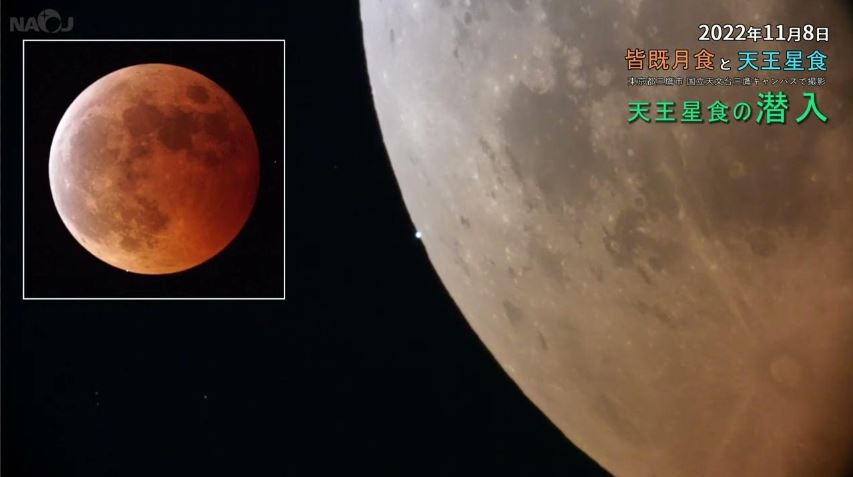 本日は、皆既月食があるそうです。また、同時に天王星食も観測できるとのことで、これらが同時に見られるのは、