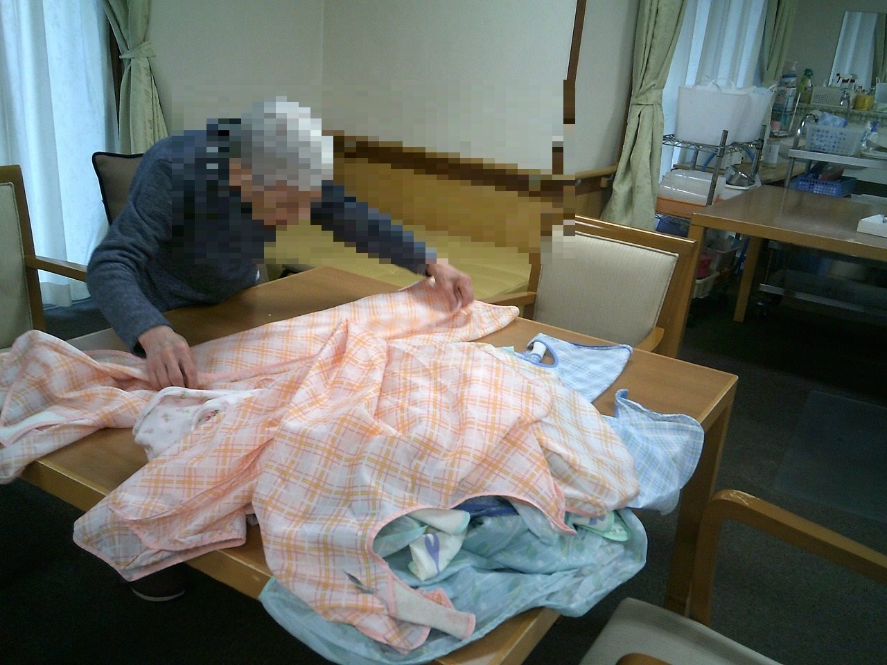 たたんでいるのは、食事のときに使うエプロンです。