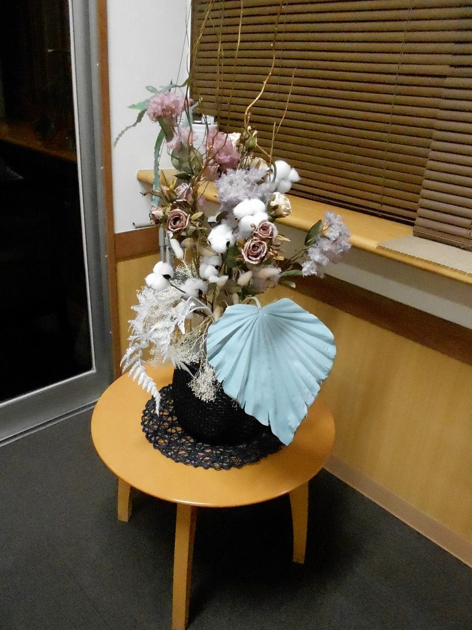 玄関入ってすぐの花飾りを新しくしました(^^)/