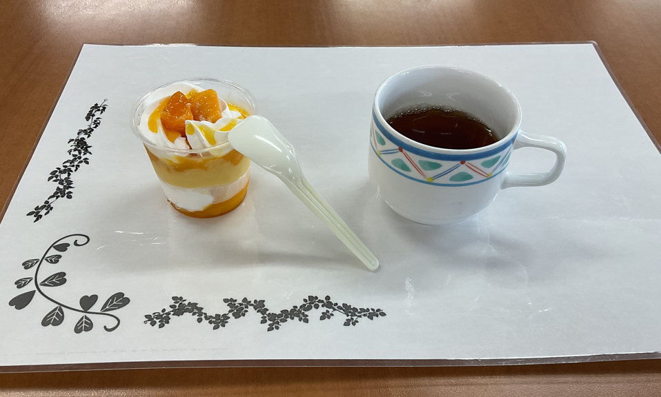 入居者様の感想として、けして強くない酸味が感じられるサッパリとした中にマンゴー甘みとクリームの濃厚さが混ざりあいとても美味しく味わえたとのこと。無言でアッと言う間に食べてしまった方もいましたよ。