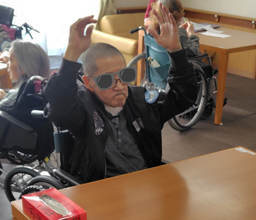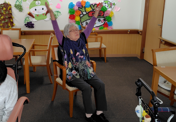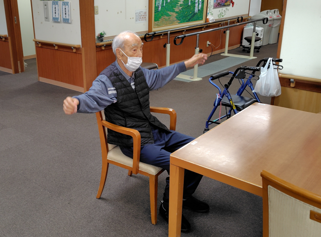 参加されている方の体の自由度はそれぞれですが、ご本人様ができる範囲でにこやかに体を動かしていますね(^^)