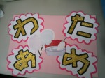 8月の誕生会を行いました。お花と誕生日カードのプレゼント、皆さんでケーキを食べ歌を歌いお祝いしました。