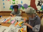 入居者さんが連日七夕飾りを手伝ってくれています。