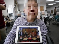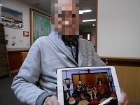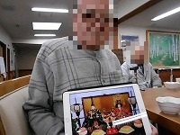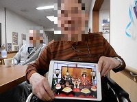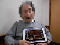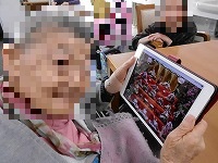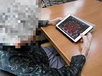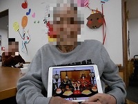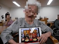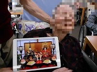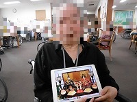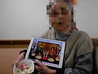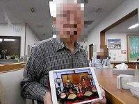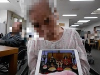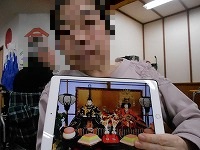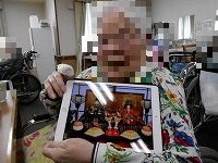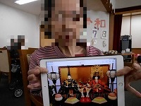 大きな雛壇を下から見上げる…という訳にはいきませんが、入居者の皆様に、iPadを手に取り思い思いにお雛様を眺めて頂きました。