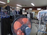 扇風機を回しながら、乾くのを待ちます。居室にお届けできるようになるまで、今しばらくお待ちください。