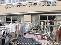 当施設では通常、1階脱衣室にて着替えて頂いた後、ユニットバス2つを利用した一般浴と、座った姿勢で入浴できる座浴形式の機械浴1つ、寝たまま入浴できる臥床浴形式の機械浴1つを並行して使用し、入浴サービスを提供しています。