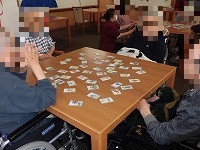 カルタ取りにはコツがあるようで、手元にあるカルタを記憶しておくと取りやすいようです。麻痺があって手が伸びにくい人でも、そこが上手く出来ると取る枚数を稼げます。頑張ってください!