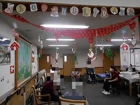 週に1回の集団リハビリも、クリスマス飾りの下で実施されています。