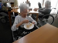 体をほぐした後、おやつとお茶で栄養と水分補給をします。