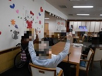 皆さん、映像と音声にあわせて手や体幹を動かされています。