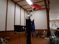 ハンカチから、傘のほかに卵や瓶、花飾りが出てきました。会場、拍手喝采です。