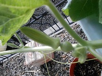 雌花の咲いた後も幾つか確認できました。受粉さえしていれば葉が光を受け光合成をたくさんしてくれて、大きな実が育ってくれるはず…と期待したいところです。