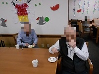 2日続けて厨房特製ケーキをお出しするのは諸事情により困難、ということで、8日(土)は現場にて、お菓子類と生クリームのセット、ドリンク類を用意して、おやつとして提供いたしました。