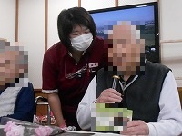 この日は男性4名様の誕生を皆様でお祝いし、記念の花とバースデーカードをお渡ししました。