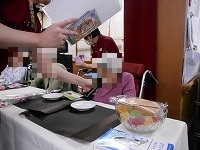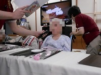 8月に誕生日を迎えられる入居者様が十名を超えてしまい、ひな壇に全員をお迎えすると「蜜」が生じるので、8日(土)と9日(日)の2日間に分けて誕生会を開催しました。今回から前半戦(8日)の模様をお伝えします。