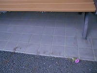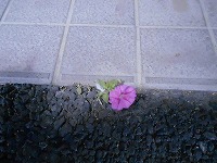 当施設玄関そばのベンチ先に、1輪だけ、朝顔のような花が咲いています。