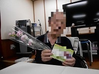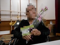 みんなで「ハッピーバースデートゥーユー」を歌った後、お祝いの言葉とバースデーカード・花束の贈呈が行なわれました。