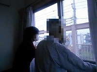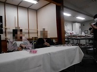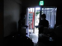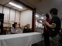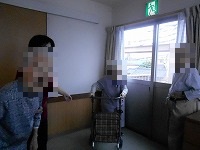 2階から火が出た想定で、火元とは反対方向の非常口に避難して頂きました。