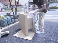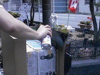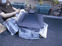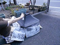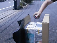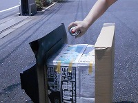 何か紙製の物にスプレーをかけているようです。