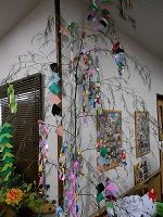 七夕飾りは既に作成済みなので、短冊と一緒に飾ります。