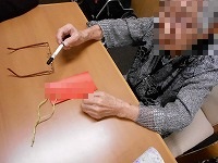 連日の雨模様の中、入居者の皆様に、七夕飾りと一緒に飾る短冊に願いごとを書いて頂きました。