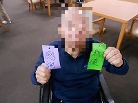 4日のうちに笹に飾りつけはしていたのですが、5日、改めて入居者の皆様に願いごとを短冊に書いて頂きました。