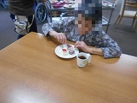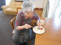 カラオケ大会が終わった後は、お楽しみのおやつ。ケーキが出ました!