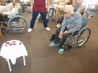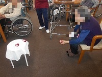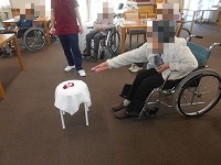 この日は、丸椅子の上に玉を投げてもらいました。チームは組まずに、個人戦でやってみました。
