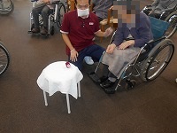 今回は床ではなく、顔や腕に近い高さに的を設定してみました。皆さん、巧みに上に乗せることができたようです。