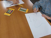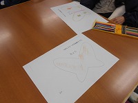 ホウレンソウを育てているときはこれの幼虫の食害に悩まされていましたが、それはそれ、ということで、思い思いに仕上げて頂きました。