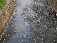 桜は既に散り始め、枝によっては緑の葉が目立ち始めました。よく見ると、川面に桜の花弁が少々流れています。