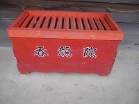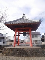 真っ赤な色合いの鐘楼と賽銭箱が目につきます。