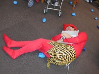 今年の青オニは「忘れオニ」。何故か、ワスレ・オニさんと名乗っていました。赤オニは「病気オニ」。赤城山から来たそうです。