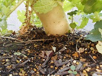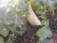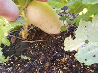 見ての通り、ダイコンはまだど根性?で根を張っています。